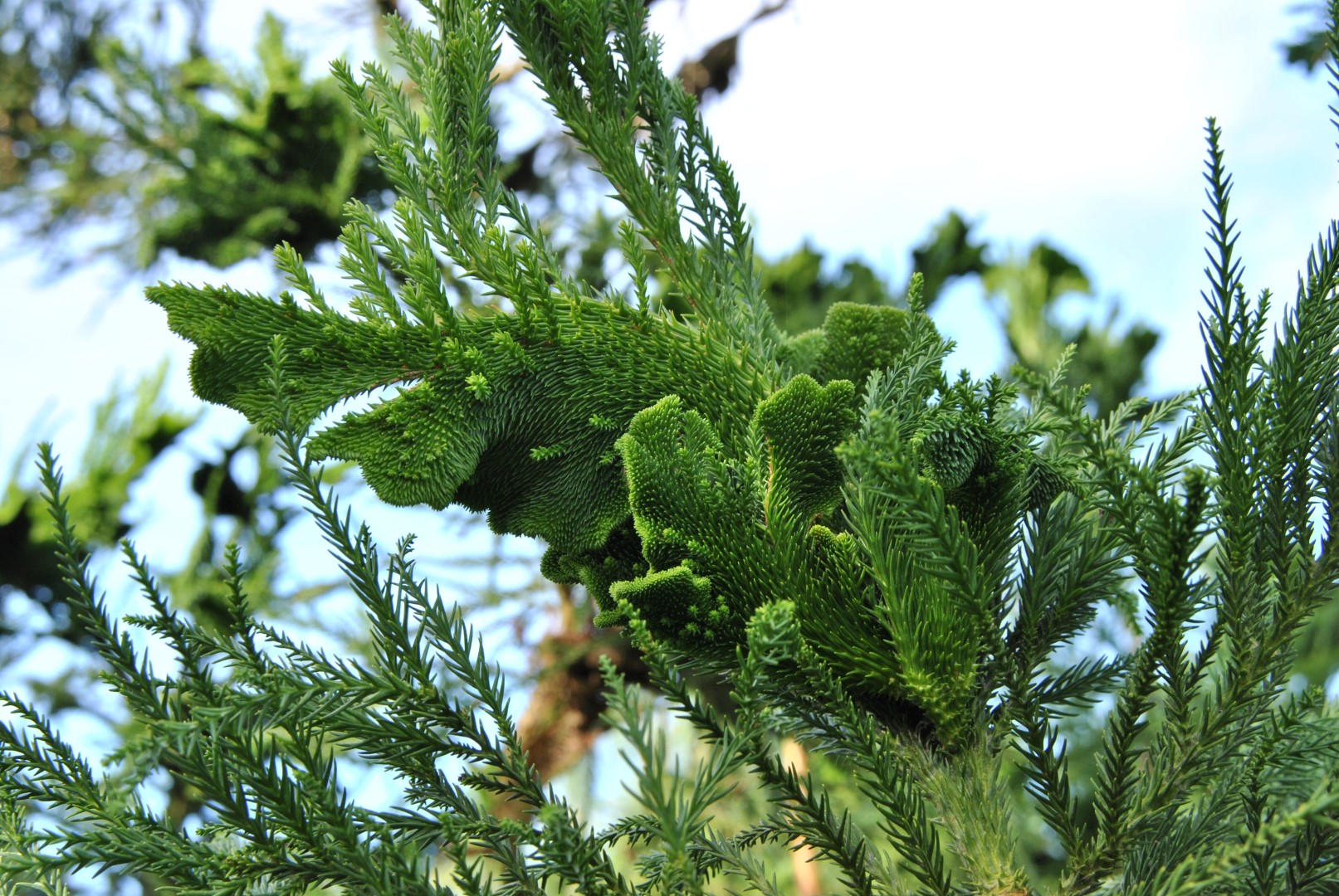 needles, sickle-shaped, bright green, 0.6 - 1.2 cm, evergreen