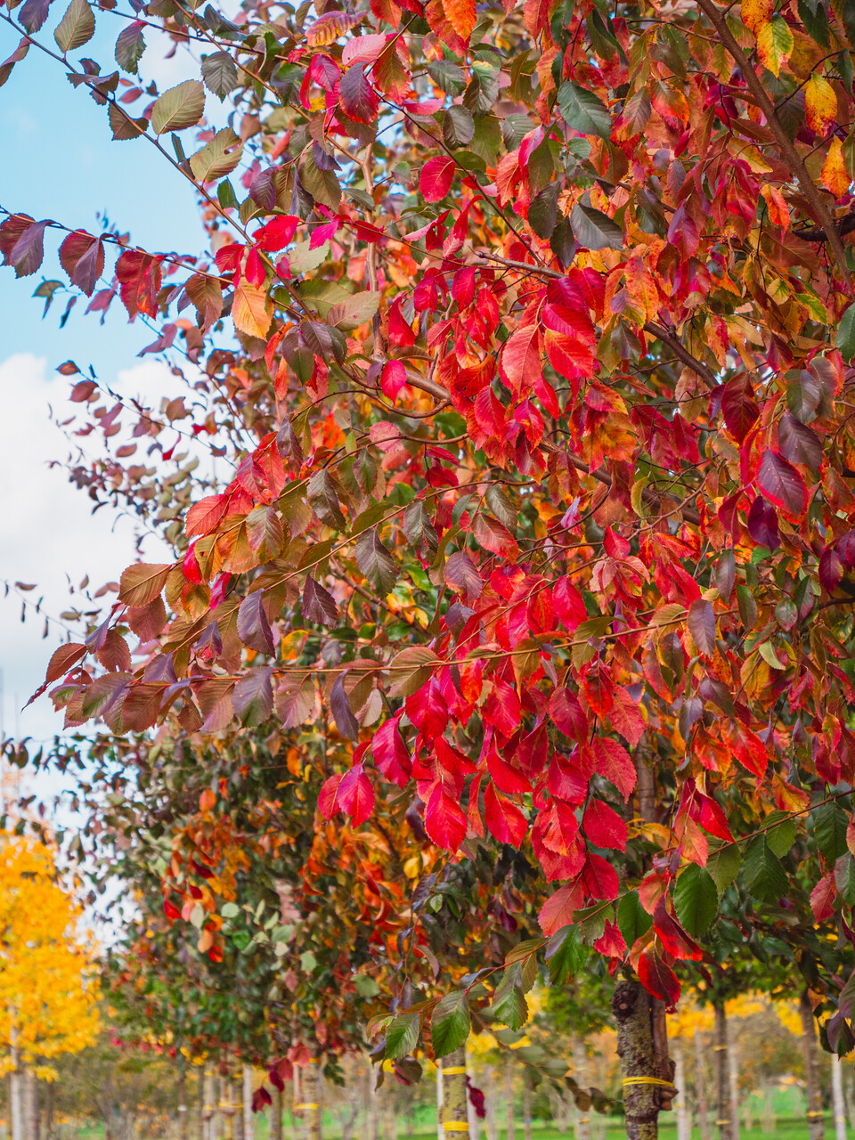 The leaves of Ulmus 'Frontier' turn röd in autumn.