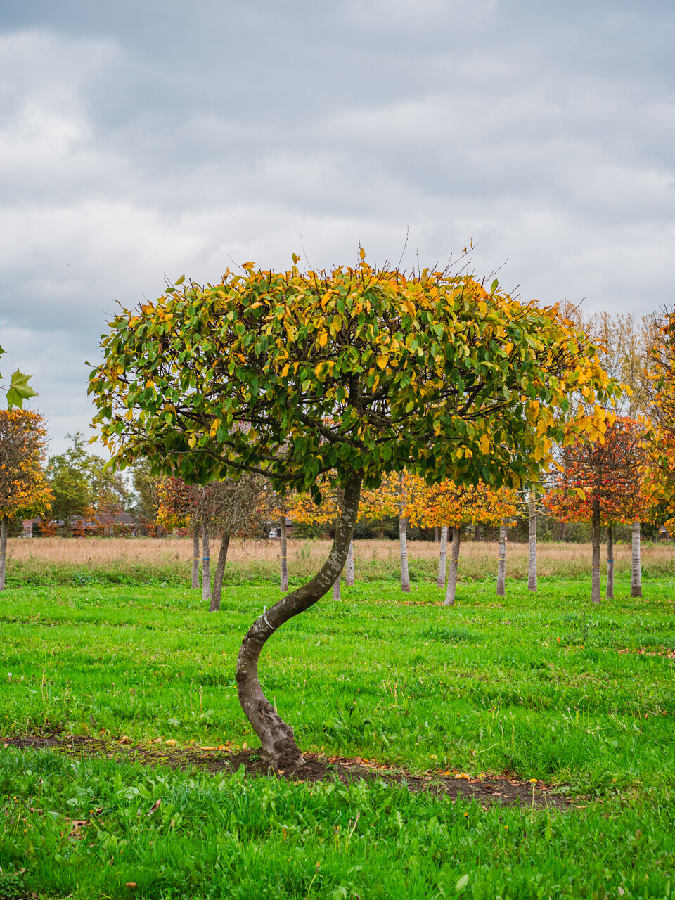THE SWING-träden är takträd med en distinkt pendel i stammen. Idén till dessa träd uppstod ur behovet av ett grönt tak över terrassen, utan att hindras av en stam i mitten. Detta är praktiskt, men också bättre för trädet eftersom träd föredrar att inte stå i stenläggning. I en rabatt kan rötterna få vatten och luft bättre och kommer inte att trycka upp stenläggningen. Så det är en win-win-situation och dessutom ett riktigt blickfång i trädgården. Effekten av den S-formade stammen ger varje terrass eller trädgård en lekfull men ändå modern karaktär. När SWING-träd planteras mitt emot varandra kan man täcka en hel terrass, men även ett enda välplacerat träd kan ge en vacker effekt.