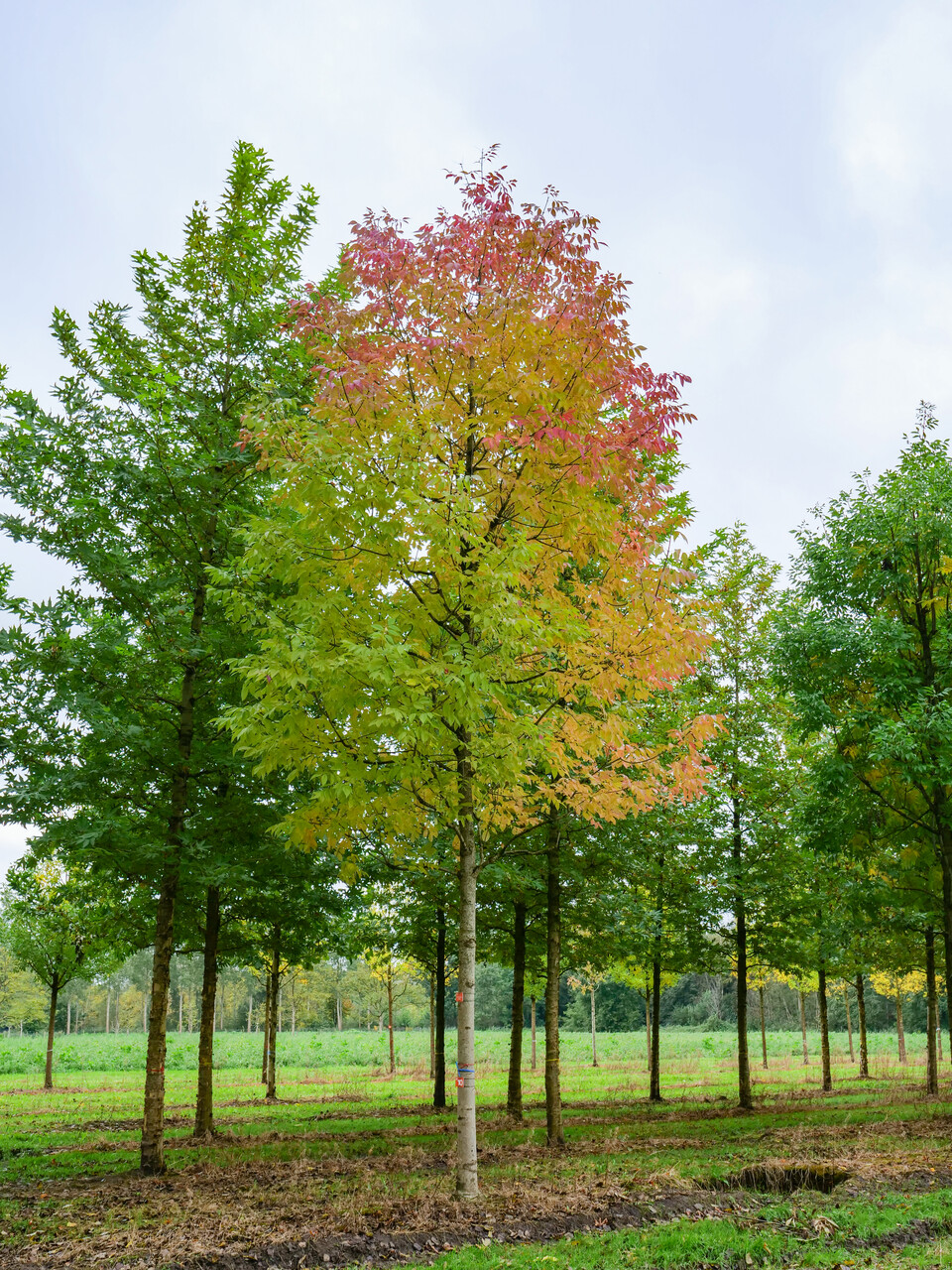 The leaves of Fraxinus pennsylvanica CIMMARON ('Cimmzam') turn orange, röd in autumn.