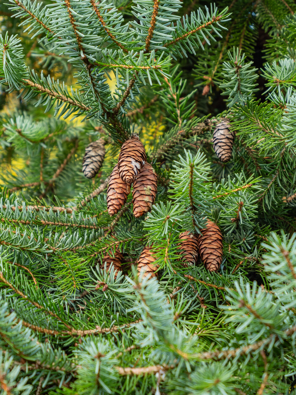 needles glossy dark green, 0.5 - 2 cm, silvery grey underneath, evergreen