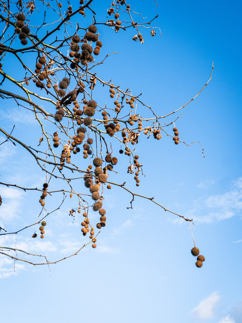 Platanus orientalis 'Minaret' blooms in may, juni.