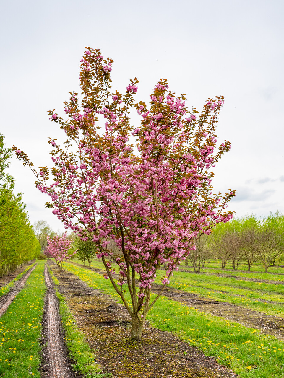 Prunus serrulata 'Kanzan' can eventually reach a height of 8 - 10 m, depending on the site and climate conditions.